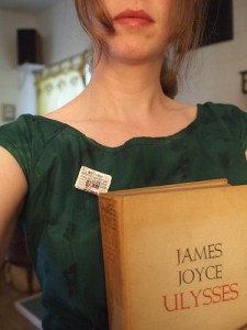 I went home to Philadelphia last year expressly to experience Bloomsday at the Rosenbach again, but I realize that I am, in fact, an Angeleno now and I should make my Bloomsday where I find it. Luckily there is a Joycean conference going on at The Huntington this week (by way of connection, Mr. Huntington was the most loyal customer to Dr. Rosenbach’s rare book business). This appropriately June Gloomy morning in Los Angeles, I pinned my Bloomsday Herald pin from the Rosenbach upon a green dress in the best attempt at Gertie MacDowell winsome Irishness I could muster as a woman approaching 30. I’ll spend my workday listening to the livestream of the Rosenbach’s Bloomsday festivities, and leaving work a little early to head to the Huntington to see Nicholson Baker speak about Joyce and other “dirty books.” I will likely then attempt to seek out a decent pint of Guinness in this town with my 1934 copy of Ulysses in tow, to give the day its proper Irish wake. On my way home I’ll stop by Machine Project where friend Colin Dickey is hosting a silent readalong of Ulysses.